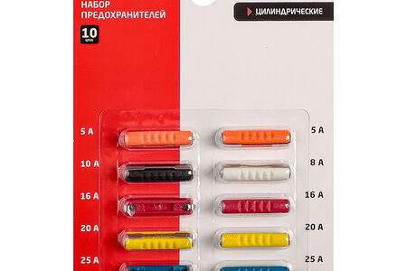 У каждого автолюбителя должны быть в запасе предохранители для защиты электрической цепи автомобиля. Набор предохранителей New Galaxy цилиндрического типа состоит из 10 предохранителей номиналом от 5 до 25 А по 2 шт. каждого номинала . Маркировка разными цветами позволяет быстро найти и не перепутать предохранитель во время монтажа и демонтажа.
