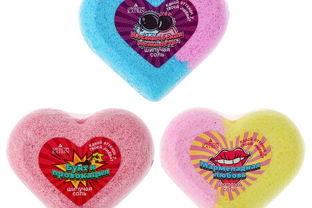 Шипучая соль для ванн «Сердце» от «Лаборатория Катрин» имеет оригинальную форму в виде сердца, нежный цвет и потрясающий аромат. Фигурка постепенно растворяется в воде, бурлит и окрашивает воду в привлекательный цвет. Соль и другие компоненты смягчают воду и оказывают благоприятное воздействие на кожу, защищая ее от сухости и способствуя заживлению мелких ссадин. Сердце может стать приятным подарком для девушки на 8 марта или День Влюбленных. Доступно 3 цвета.