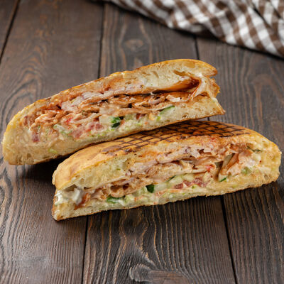 Сырный лаваш, мясо куриное, капуста, сыр, грибы, морковь, огурец, помидор, лук, соус томатный, соус чесночный
