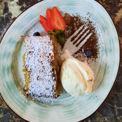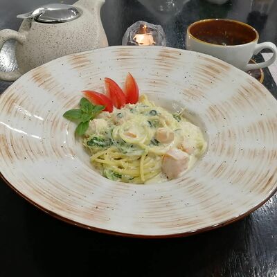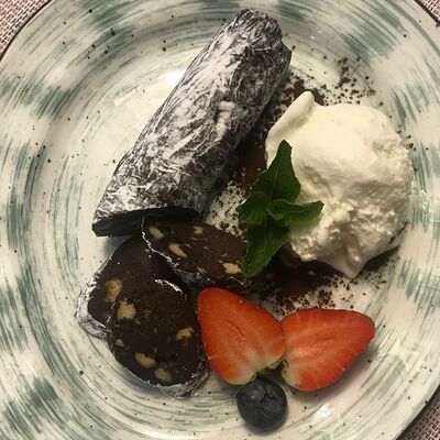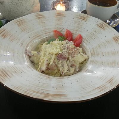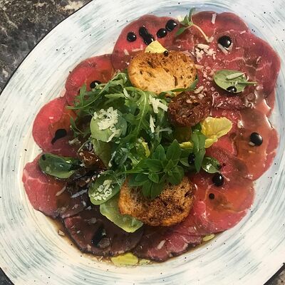 Блюдо из тонко нарезанных кусочков сырой говяжьей вырезки, приправленной соусом на основе оливкового масла и лимона. Подается с сыром пармезан и миксом салата