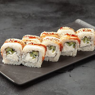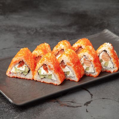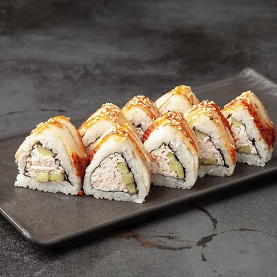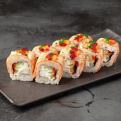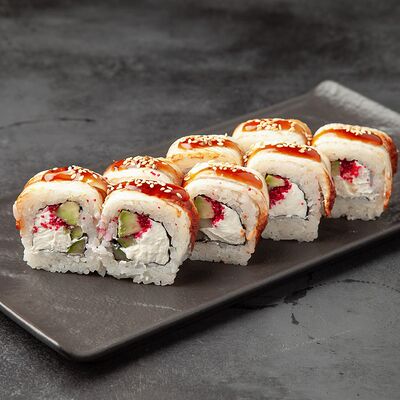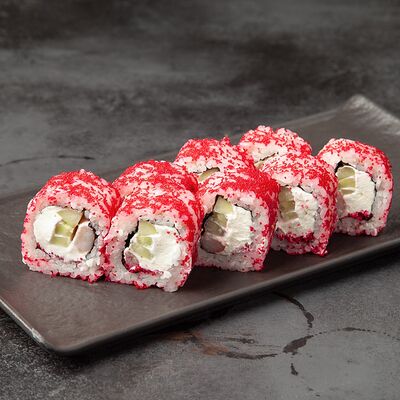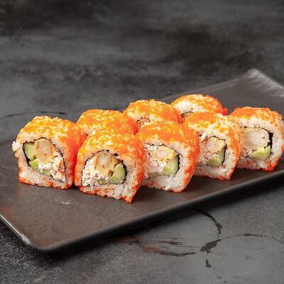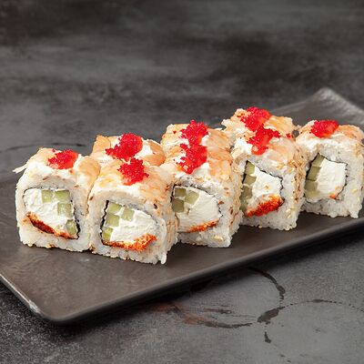 Рис, сыр, огурец, креветка, масаго, спайси соус