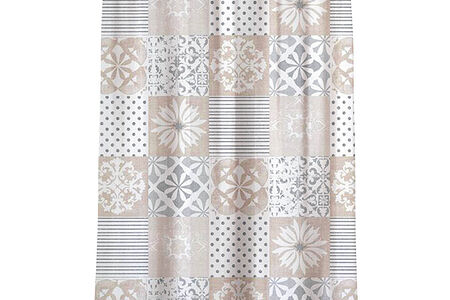 Оригинальная шторка для ванной от VETTA с орнаментом в виде плиток «Керамика» убережет комнату от брызг воды и мыльной пены во время гигиенических процедур, освежит интерьер и зонирует комнату.