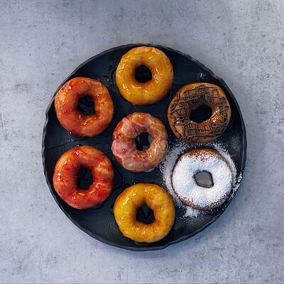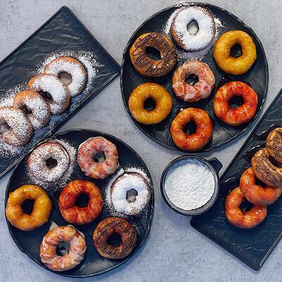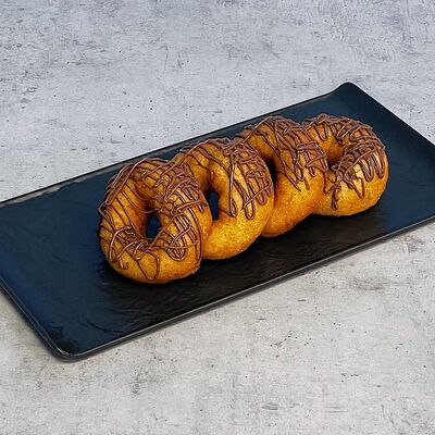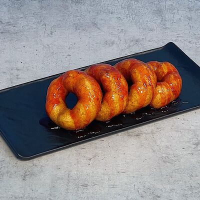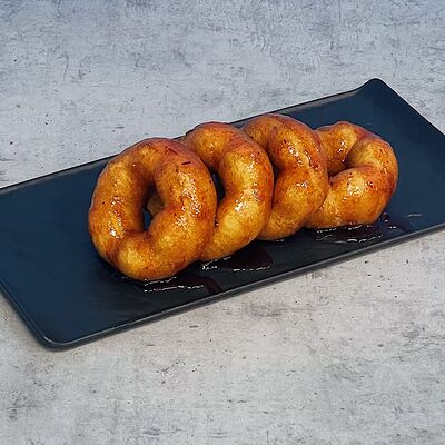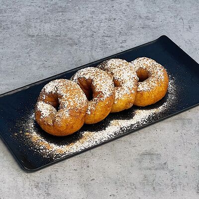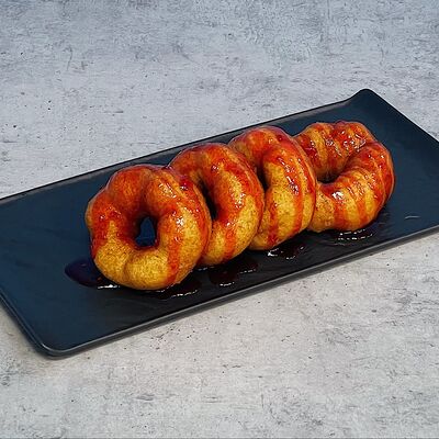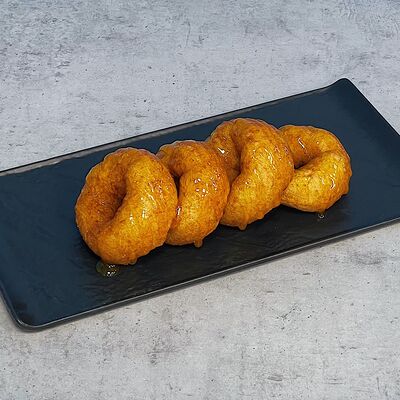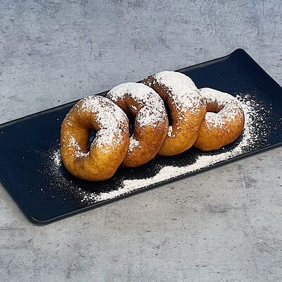 Те самые воздушные пончики (слабое дрожжевое тесто, обжаренное во фритюре) по традиционному рецепту ГОСТа со сгущенкой (4 шт.)