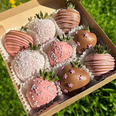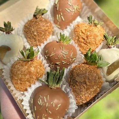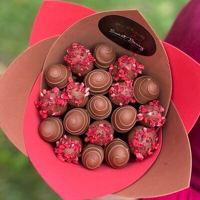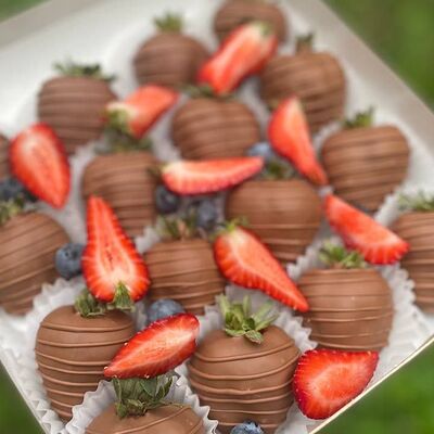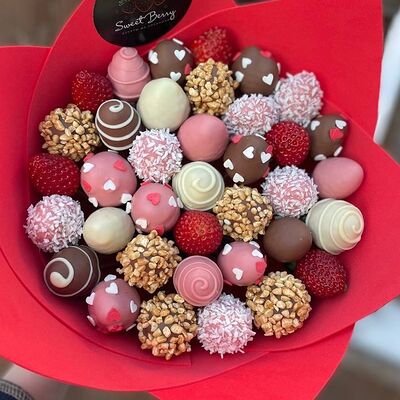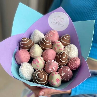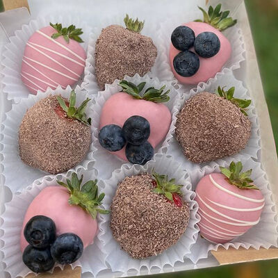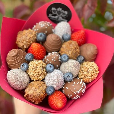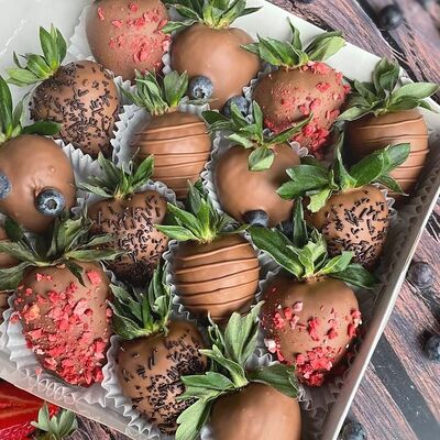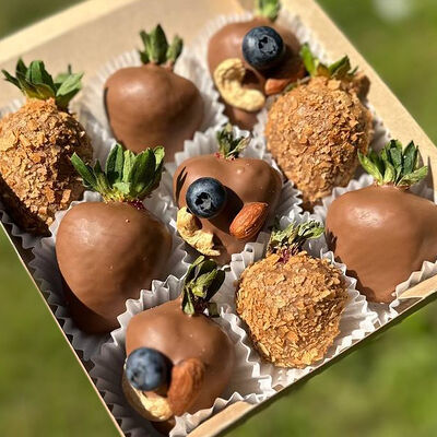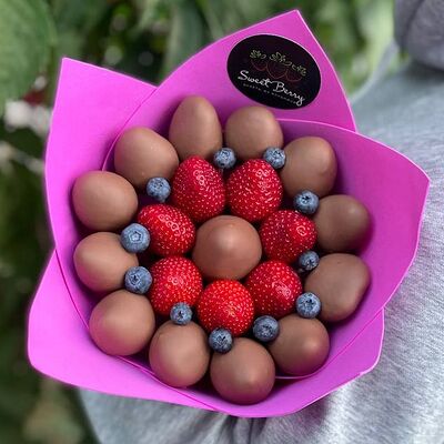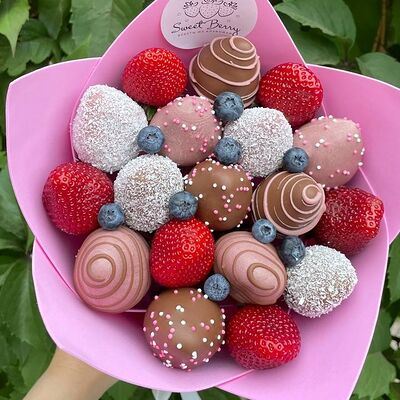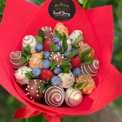 Букет из клубники в шоколаде с мятой и голубикой Красная бусинка доставка