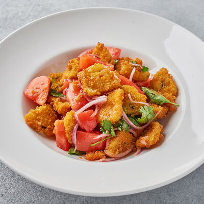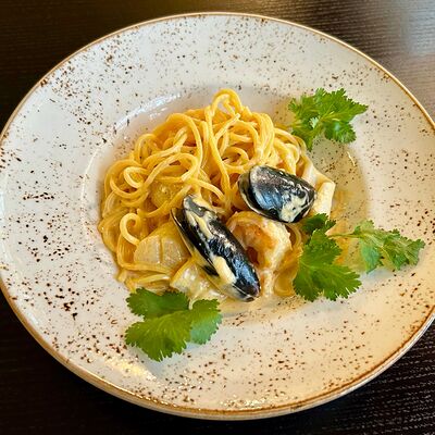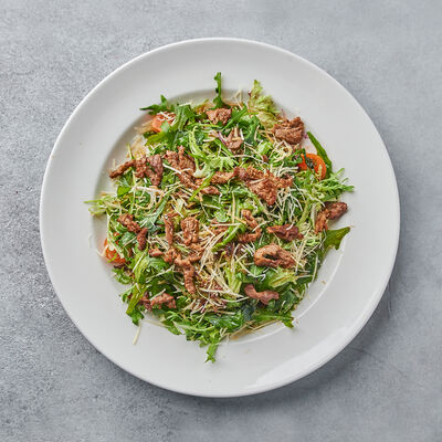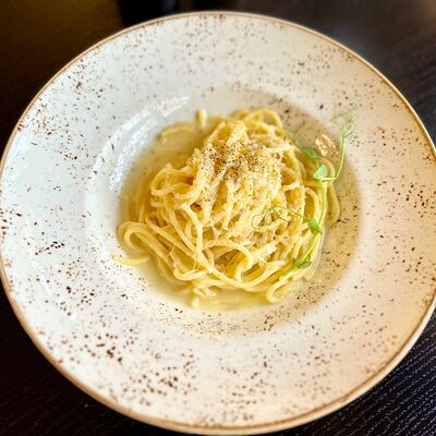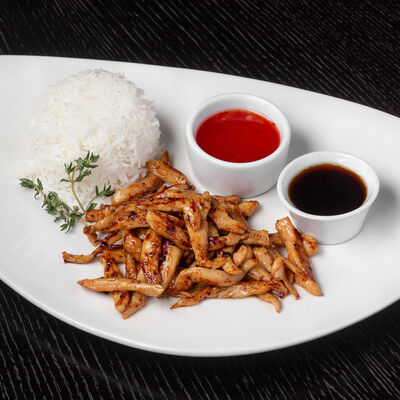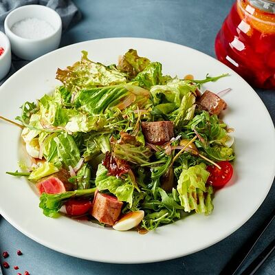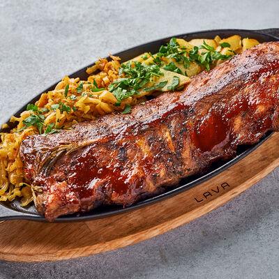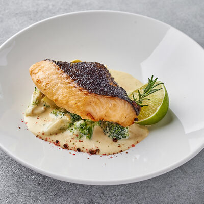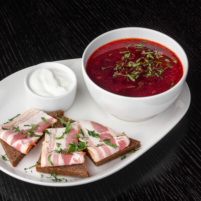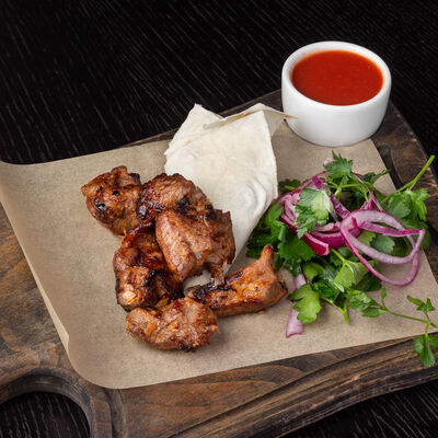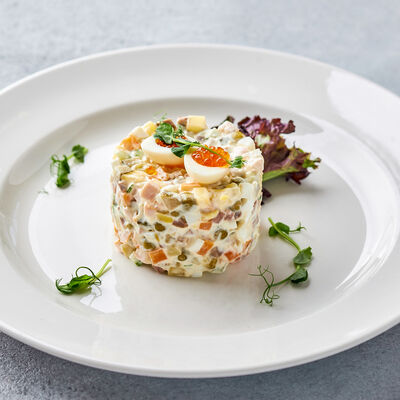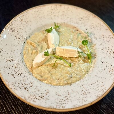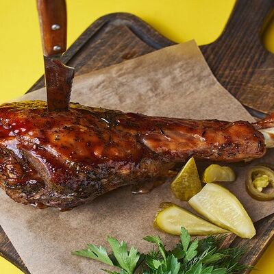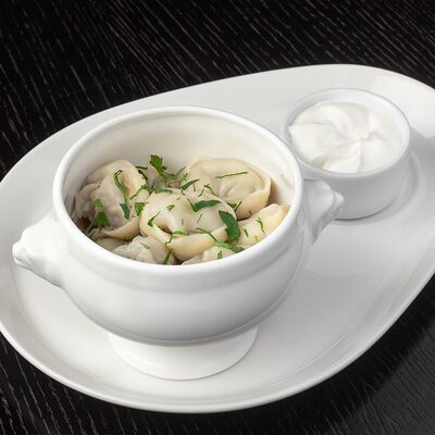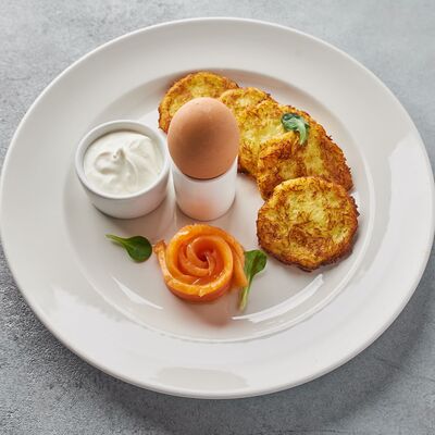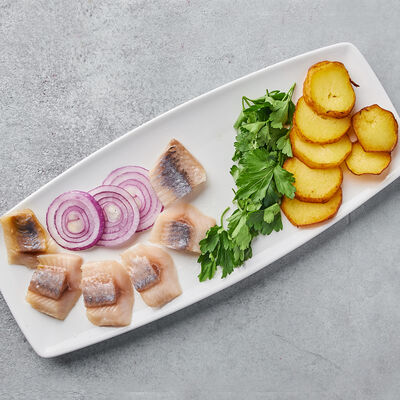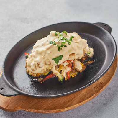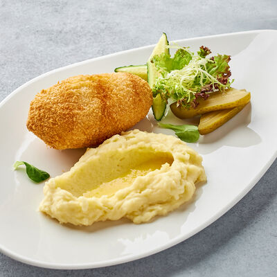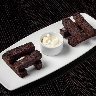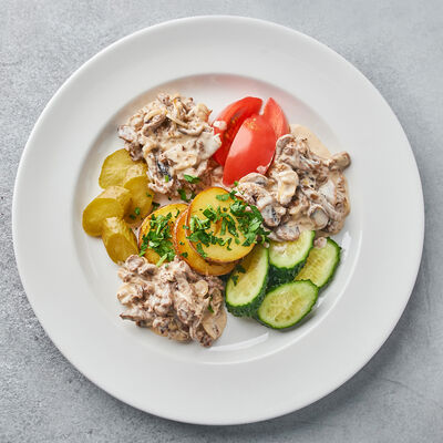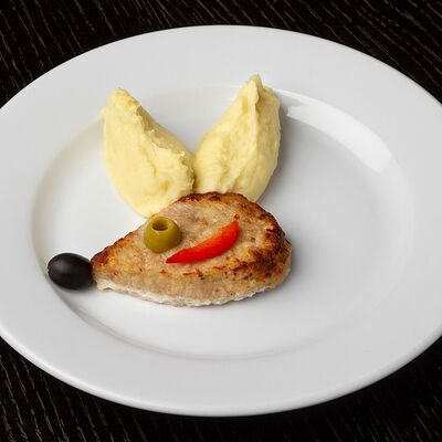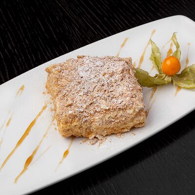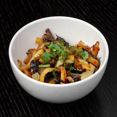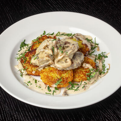 Картофель, сливочное масло, говяжий язык, соус демиглас, специи