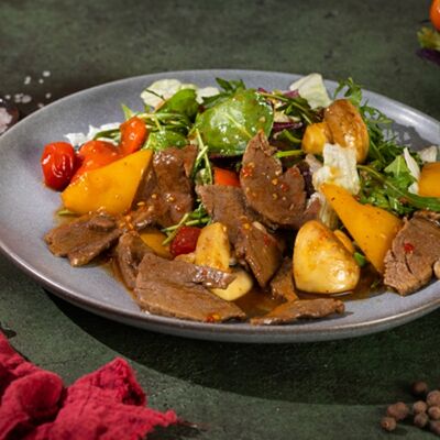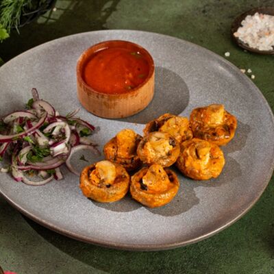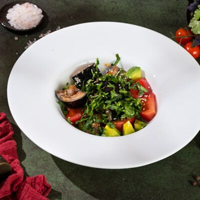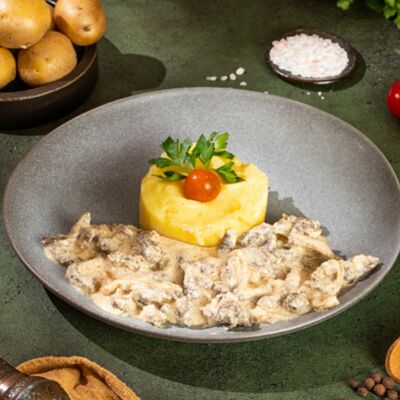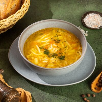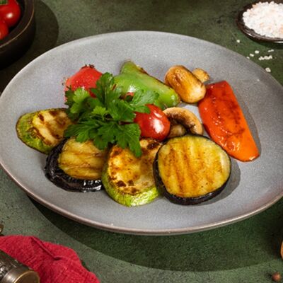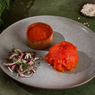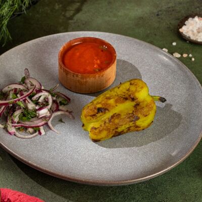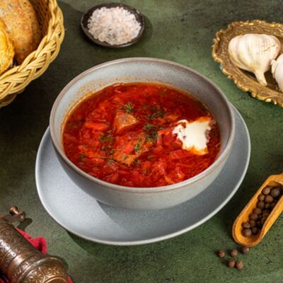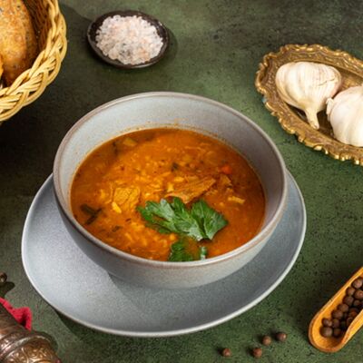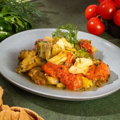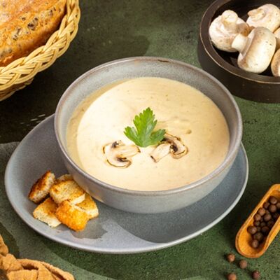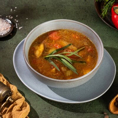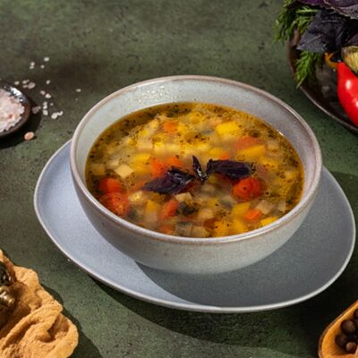 Белые грибы, болгарский перец, томаты, овощной бульон