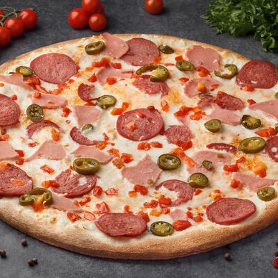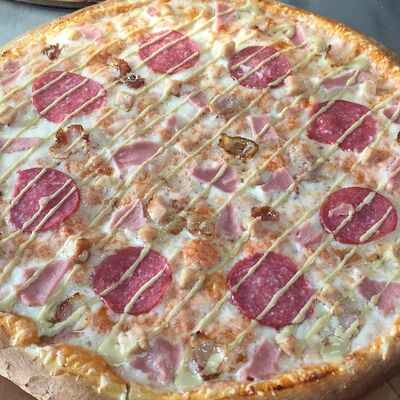 Фирменный соус, сыр Моцарелла, ветчина, бекон (36 см)