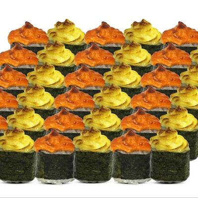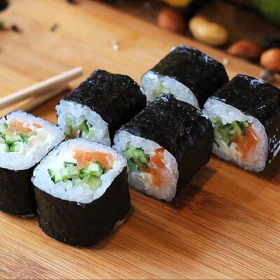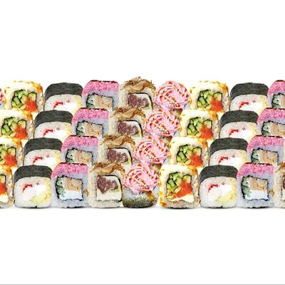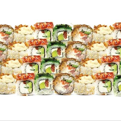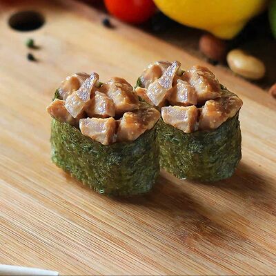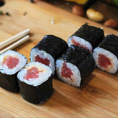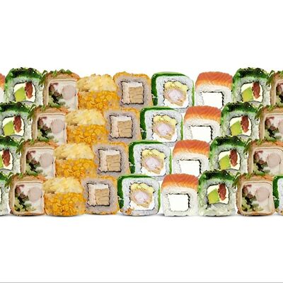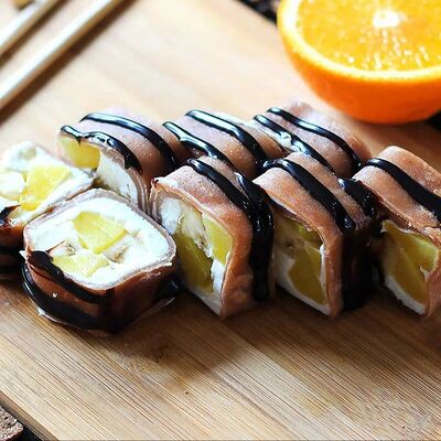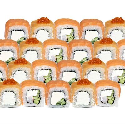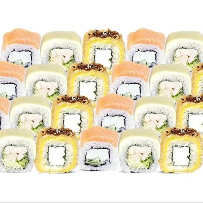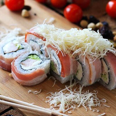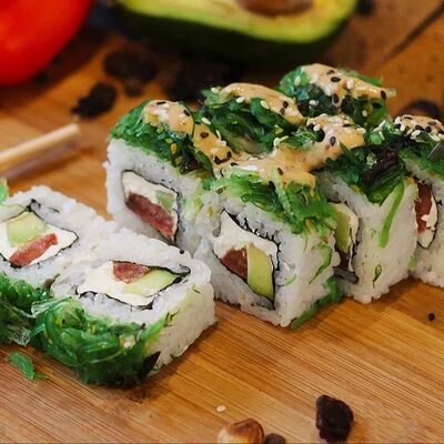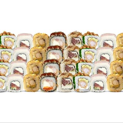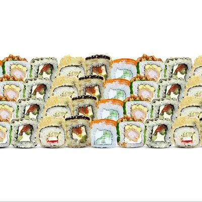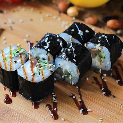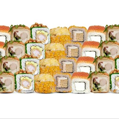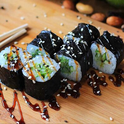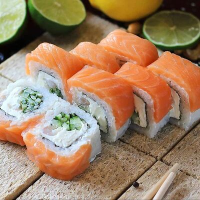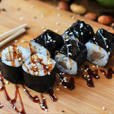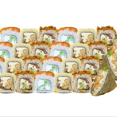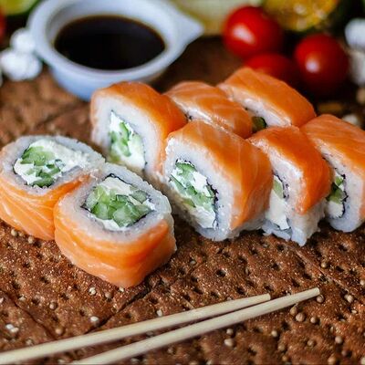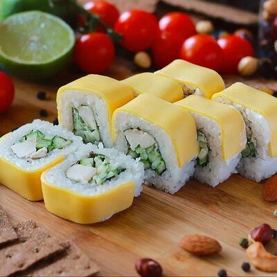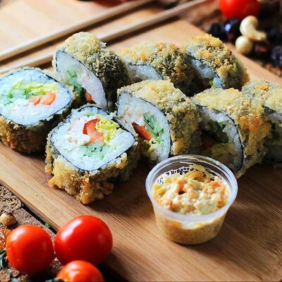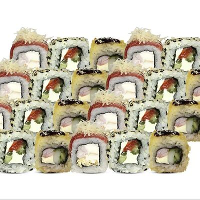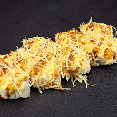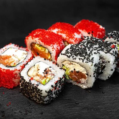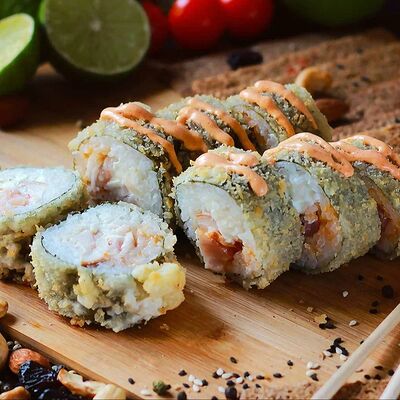 Сыр сливочный Cremette, креветка темпура, авокадо, такуан, темпура, соус унаги, кунжут, рис, нори. В комплект входит соевый соус (25 г)