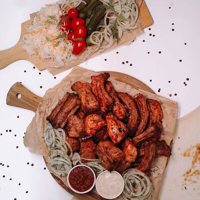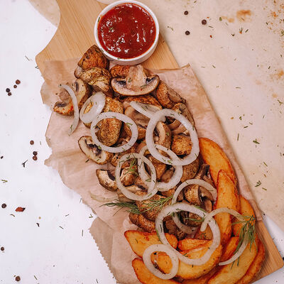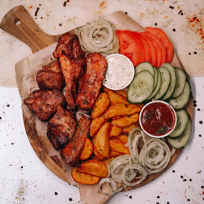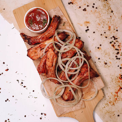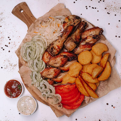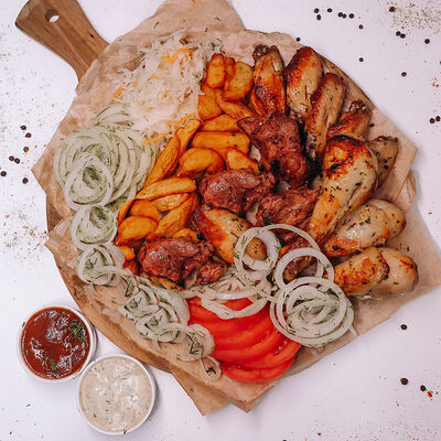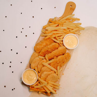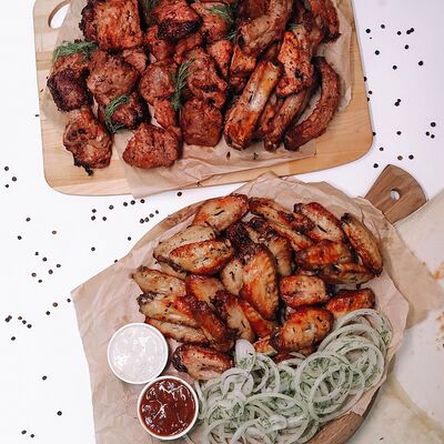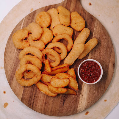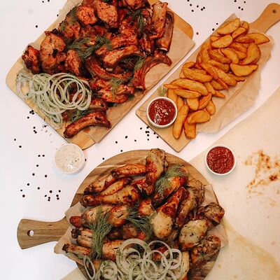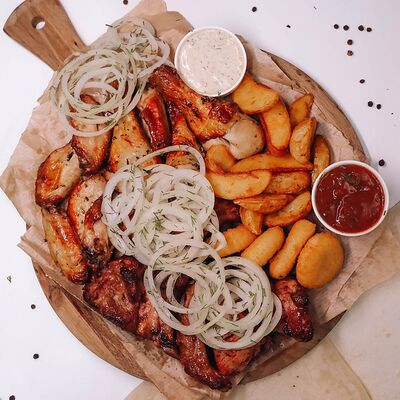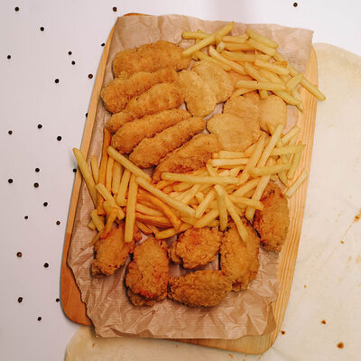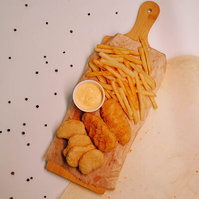Когда тусишь в одинокого) 300гр. Состав: крылья в панировке - 3 шт., стрипсы куриные - 4 шт., куриные наггетсы - 4 шт.