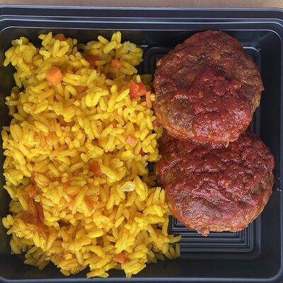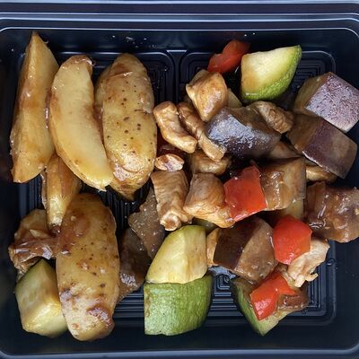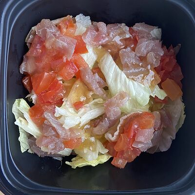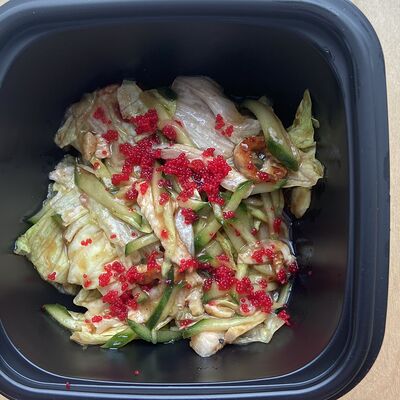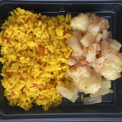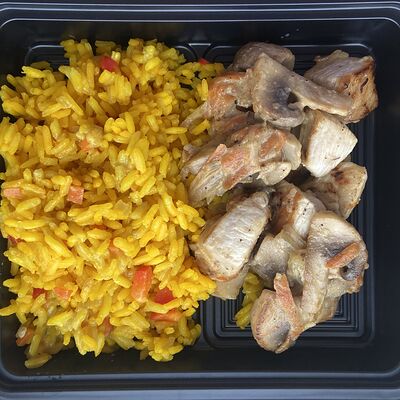 Куриное филе, соус цезарь, сыр, томат, рис, морковь, лук-репка, болгарский перец