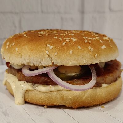 Лаваш, шашлык из курицы, фирменный соус, красный лук, пекинская капуста, морковь по-корейски, томаты, огурцы
