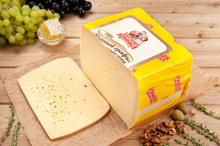 Состав: молоко нормализованное пастеризованное, соль поваренная пищевая выварочная (содержит агент антислеживающий Е536), уплотнитель хлорид кальция, ароматизатор "Молоко топленое", технологическое вспомогательное средство ферментный препарат Лизоцим (жидкий) животного происхождения (вода, лизоцим из белка куриных яиц), бактериальная закваска молочнокислых микроорганизмов, консервант нитрат натрия, молокосверстывающий ферментный препарат микробного происхождения, комплексная пищевая добавка: краситель пищевой натуральный Annato A-320-WS (краситель: норбиксин, вода, регулятор кислотности гидроксид калия). Массовая доля жира в сухом веществе - 50±1,6%. Пищевая ценность на 100 гр. продукта: жир - 29,5 г., белок - 25,0 г. Энергетическая ценность: 370,0 кКал/1520,0 кДж. Срок годности: 6 месяцев от минус 4 до плюс 4 и относительной влажности воздуха 80-90%.