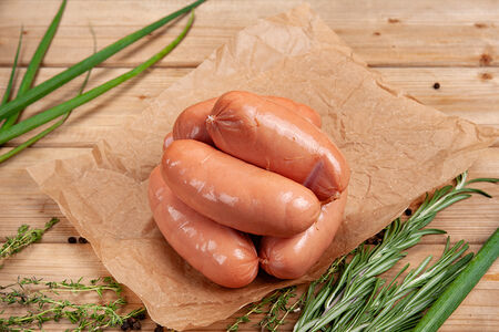 Состав: свинина, вода, говядина, шкурка свиная, комплексная пищевая добавка для мясной продукции с йодом, сыворотка молочная, телятина, соль, яичный меланж, специи.