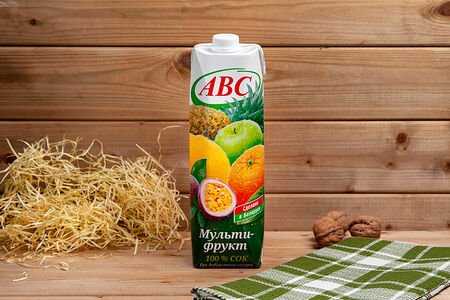 Состав: сок апельсина, ананаса, манго, маракуйи, гуавы, банана, лимона, лайма, яблока, киви и личи. Изготовлен из концентрированного сока. Не содержит сахара, консервантов и красителей.