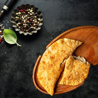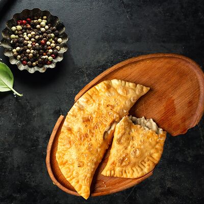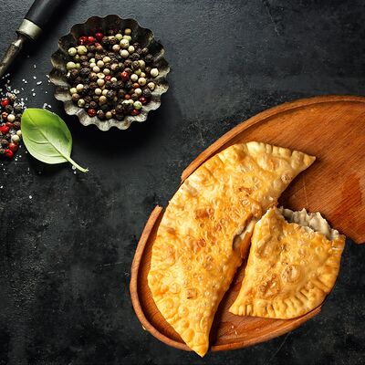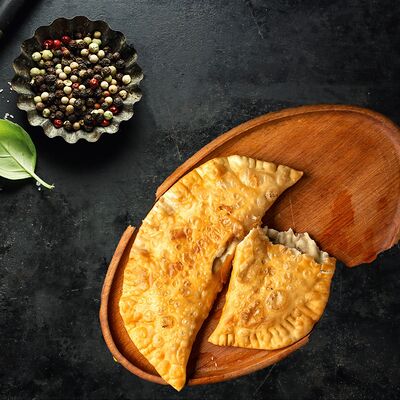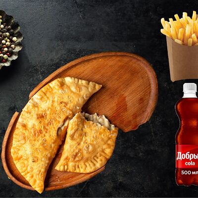 Комбо состоит из чебурека с мраморной говядиной, закуски на выбор и напитка на выбор