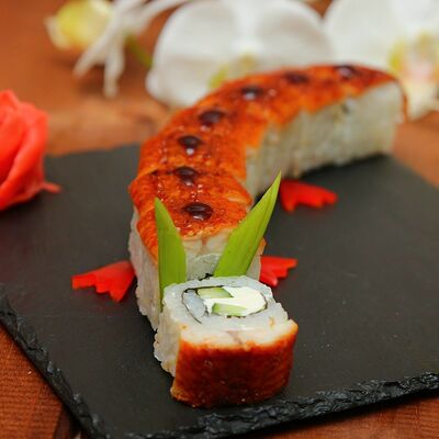 Нори, майонез, снежный краб, блинчики чакин, угорь, мука пшеничная, кляр темпурный, масло, соус унаги
