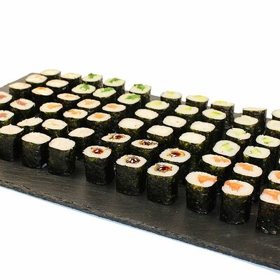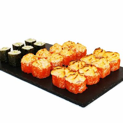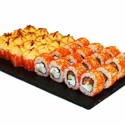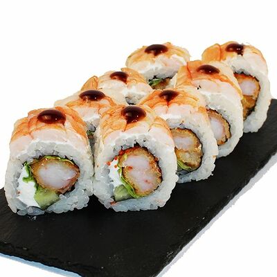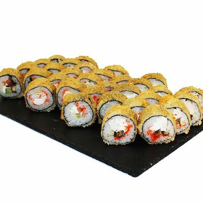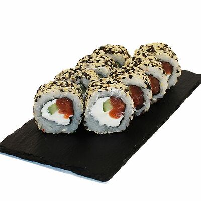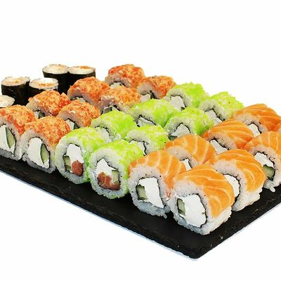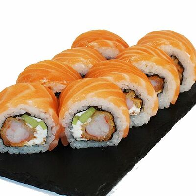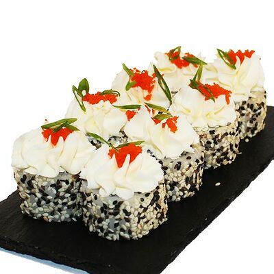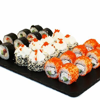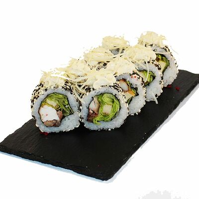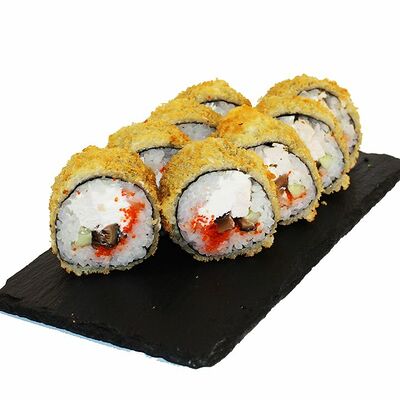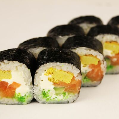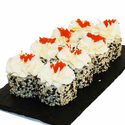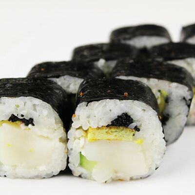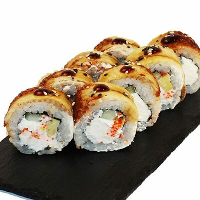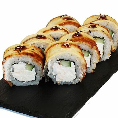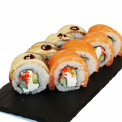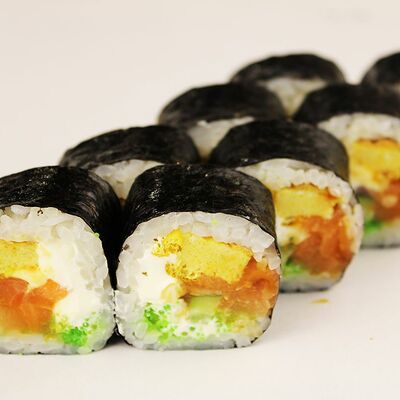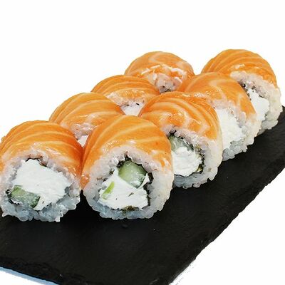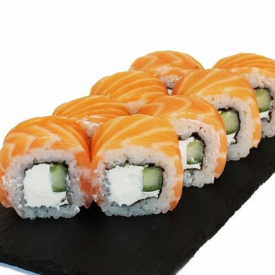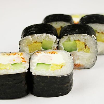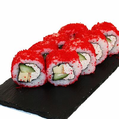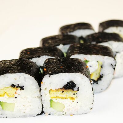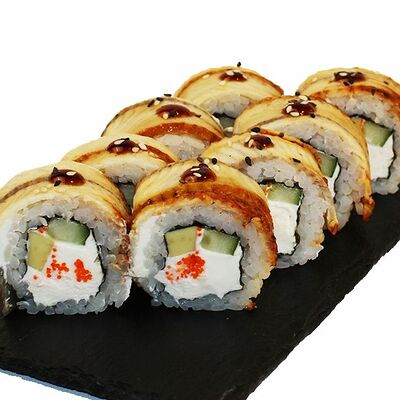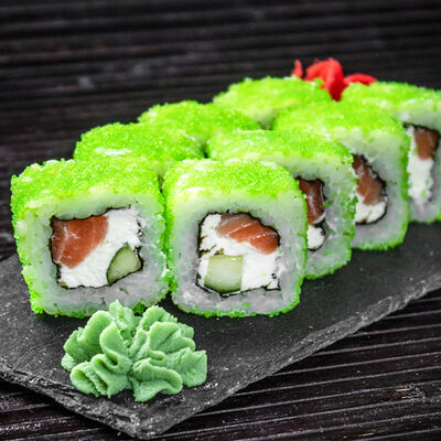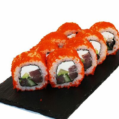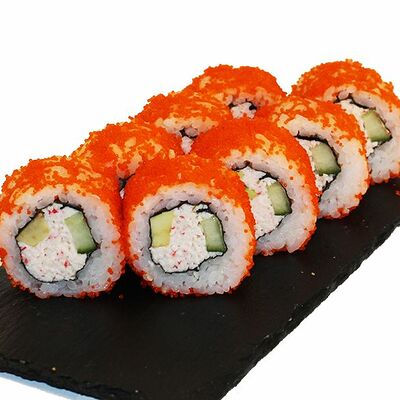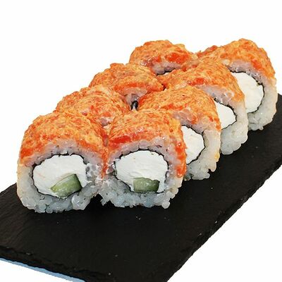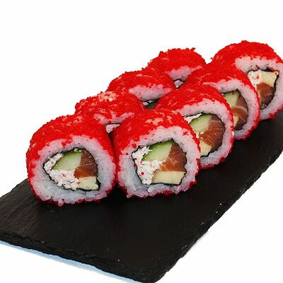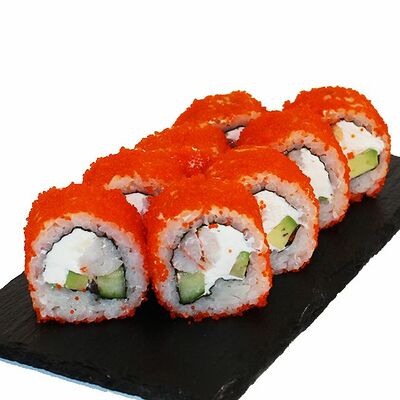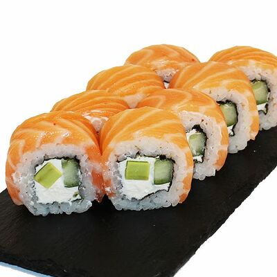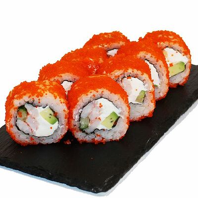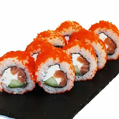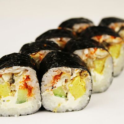Сливочный сыр, огурец, лосось, икра масаго, угорь, авокадо