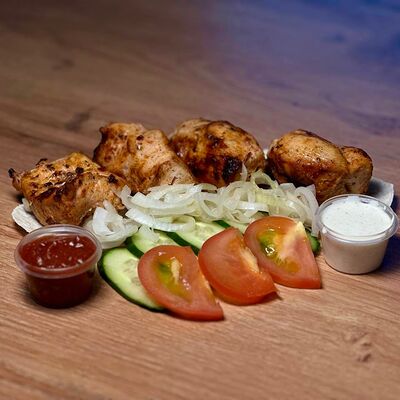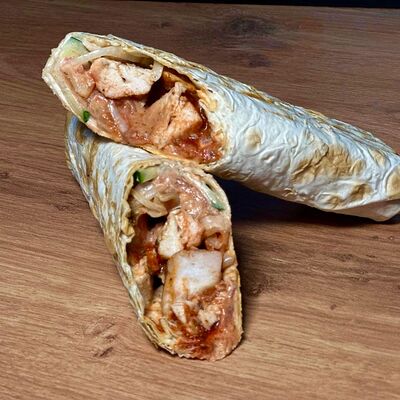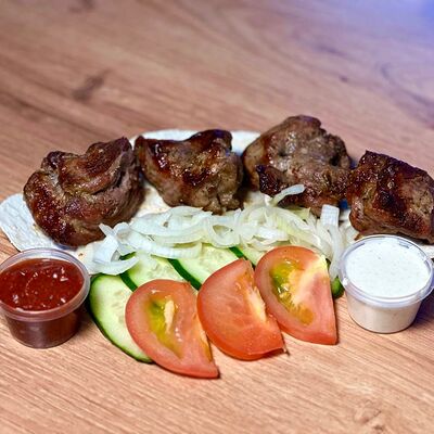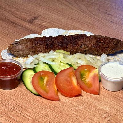 Свежий огурец, помидор, капуста пекинская, красный лук, фирменный соус, лаваш