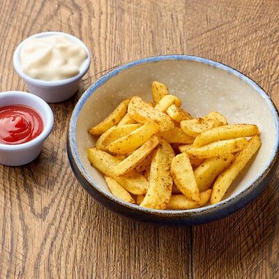 С перцем чили и петрушкой. Подаются с соусом ранч и кетчупом