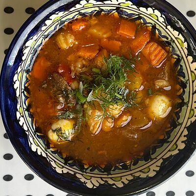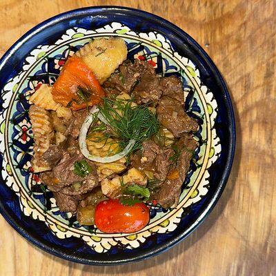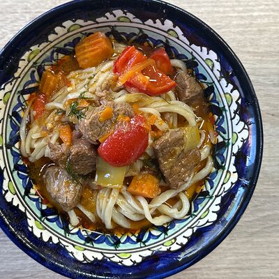 Морковь, говядина жареная, лапша домашняя, перец сладкий красный