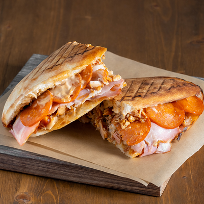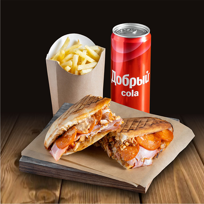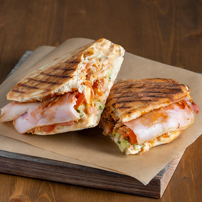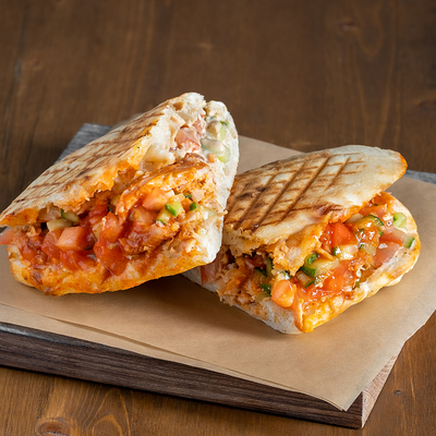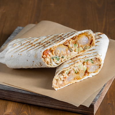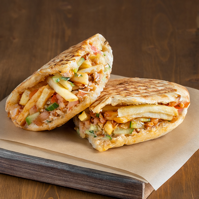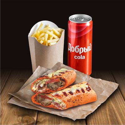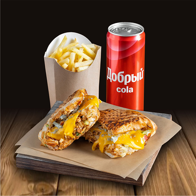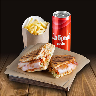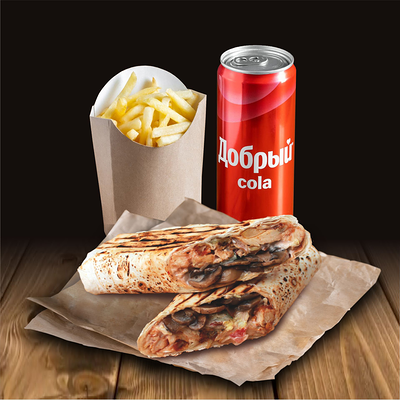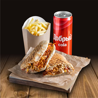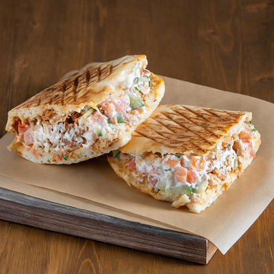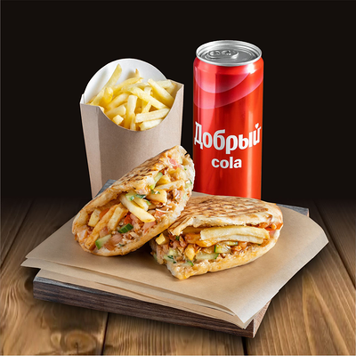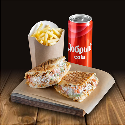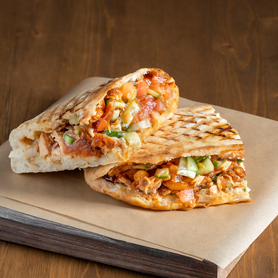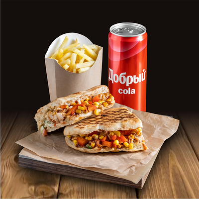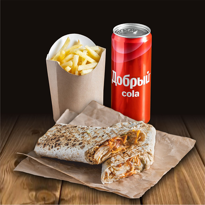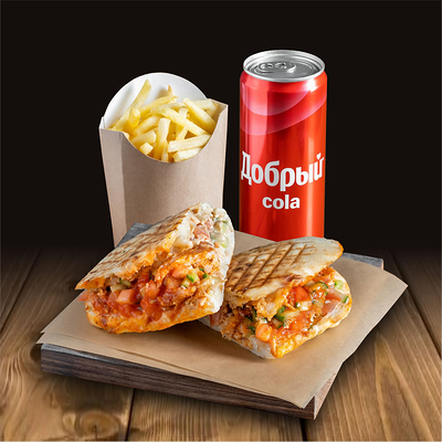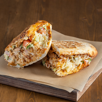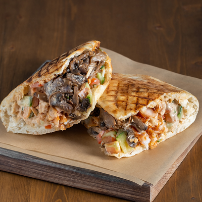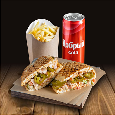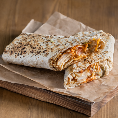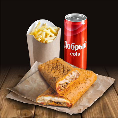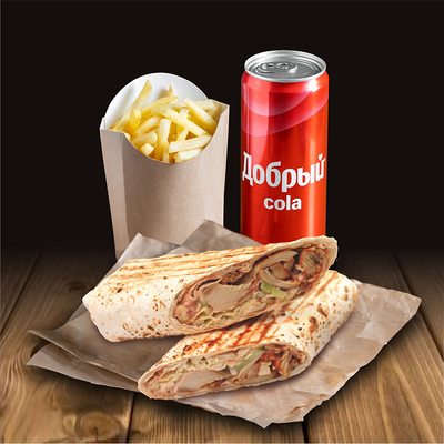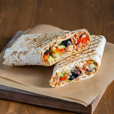 Мясо курицы, ананасы, томаты, огурцы свежие, микс салата, соус фирменный, лаваш