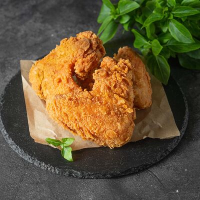 Жареные куриные крылышки в панировке собственного производства в фирменном маринаде с нотками мексиканского соуса (3 шт.)