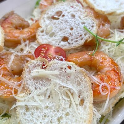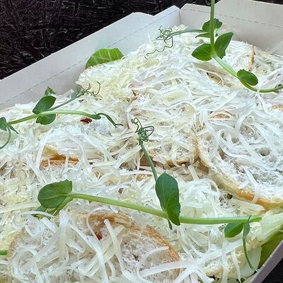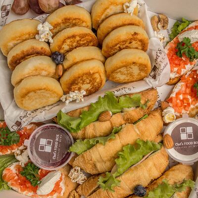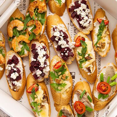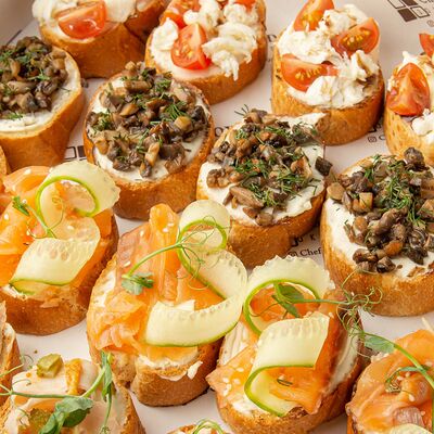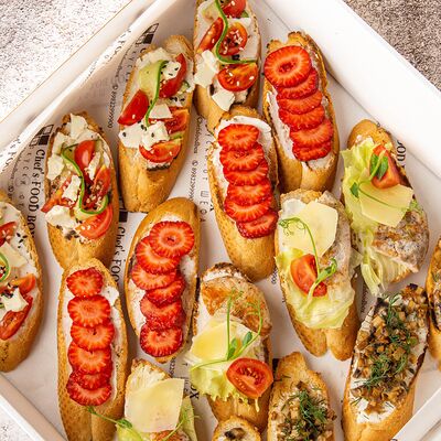 1. Хрустящий багет с нежнейшим творожным сыром, бужениной и тар-таром из солёных огурцов 2. Хрустящий багет с крем чизом и ягодами 3. Хрустящий багет с моцареллой, помидорками Черри и бальзамиком 4. Хрустящий багет с курицей в сливочном соусе с шампиньонами