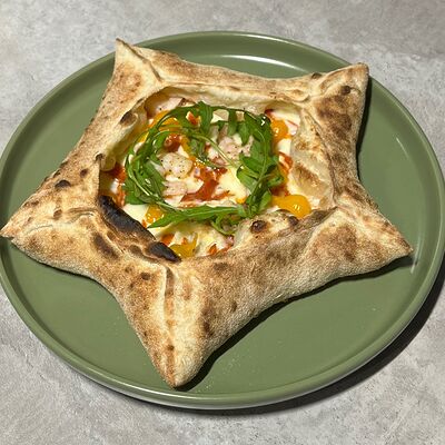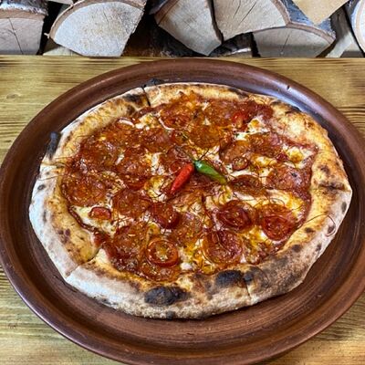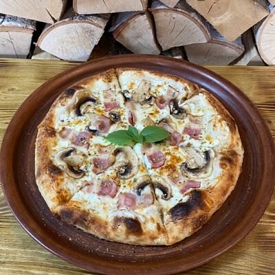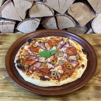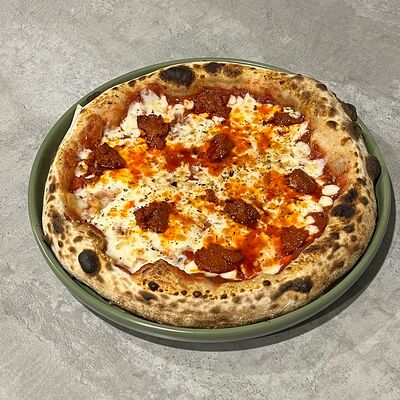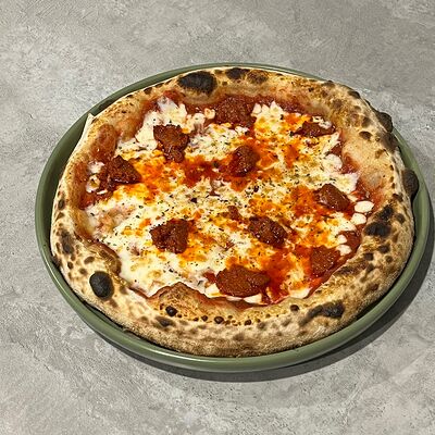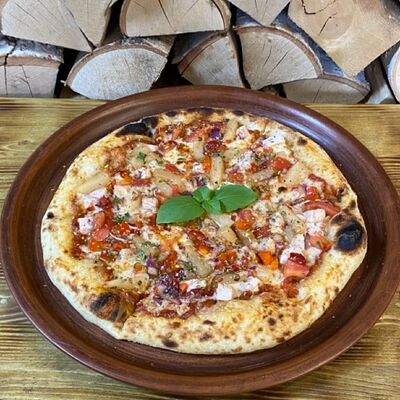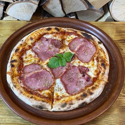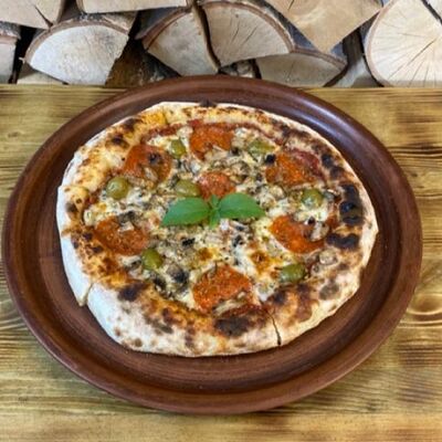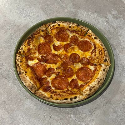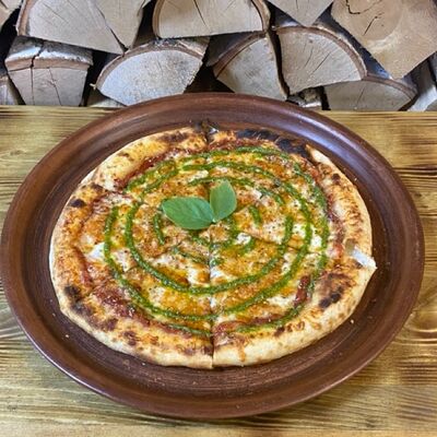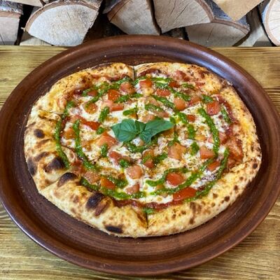 Классическое сочетание фирменного томатного соуса с базиликом, сыра моцарелла и спелых томатов. Дополнительный вкус придаёт наш домашний соус песто. Для тех, кто любит классический, простой вкус (25 см)