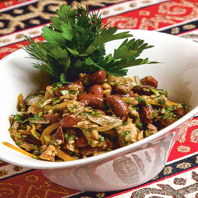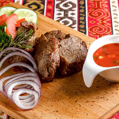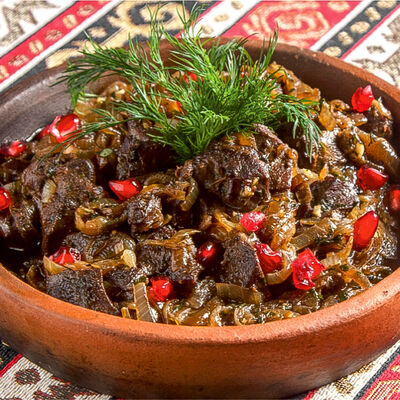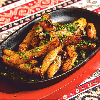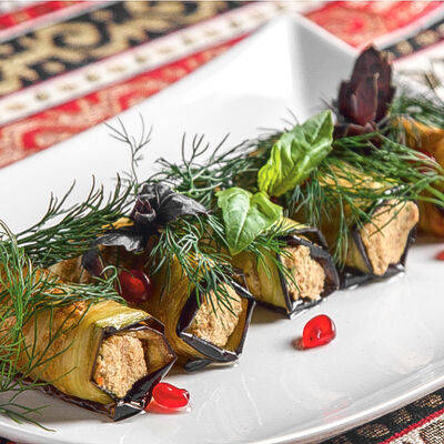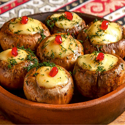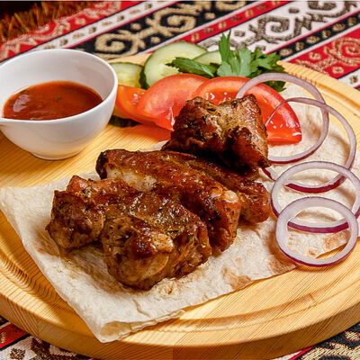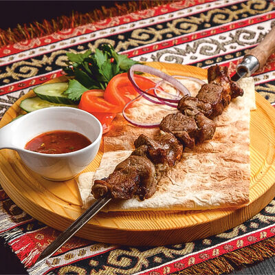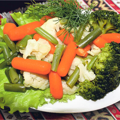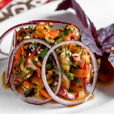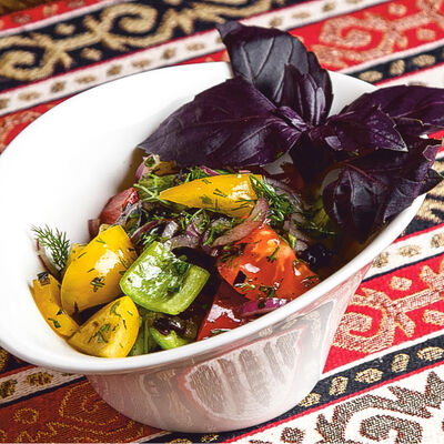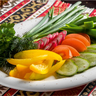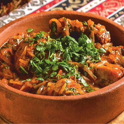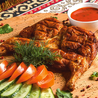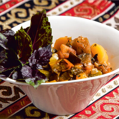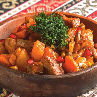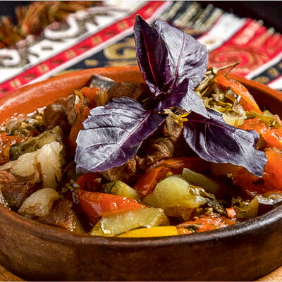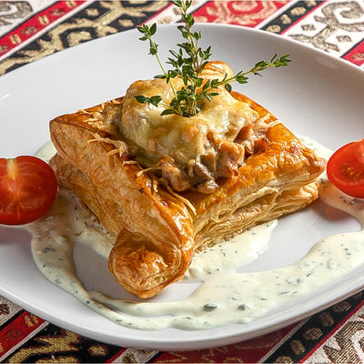 Обжаренные овощи с курицей под сметанным соусом в хрустящем лаваше