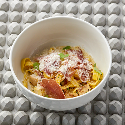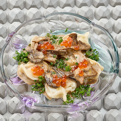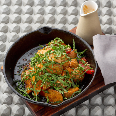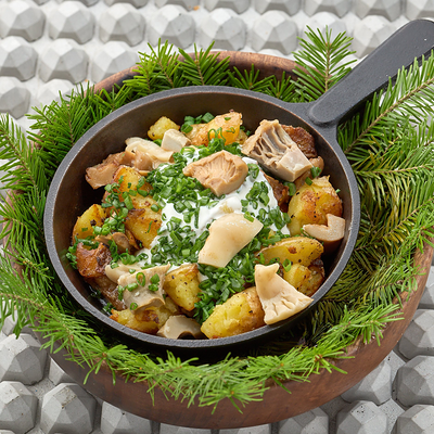 Сковорода с жареным картофелем и уральскими грибами доставка