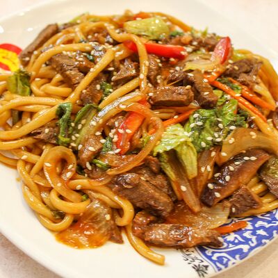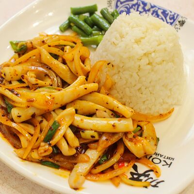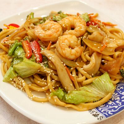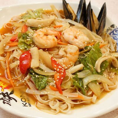 Острый Малатан с креветками, кальмарами и крабовыми палочками доставка