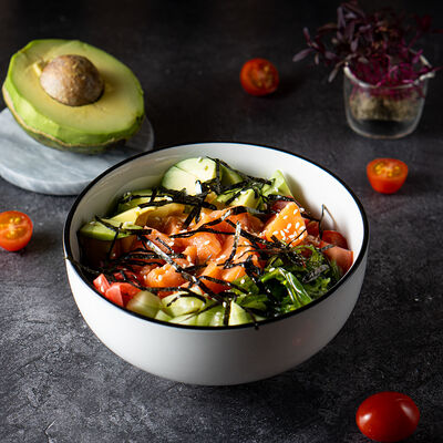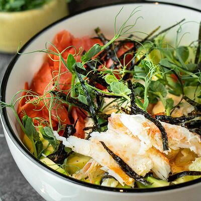 Рис, авокадо, свежий огурчик, маринованный имбирь, креветки, соус спайси и унаги-соус