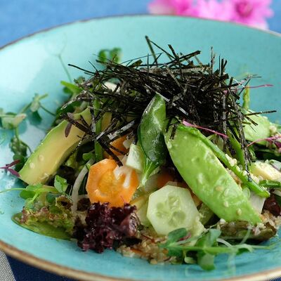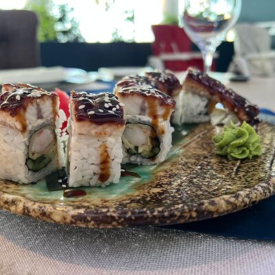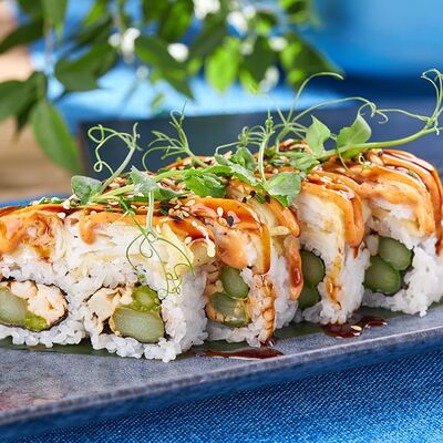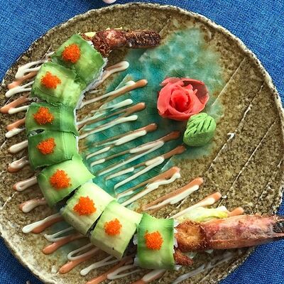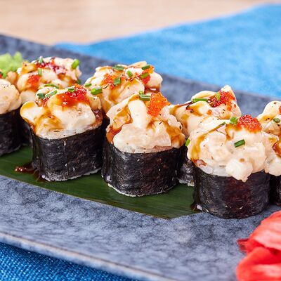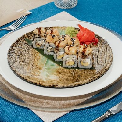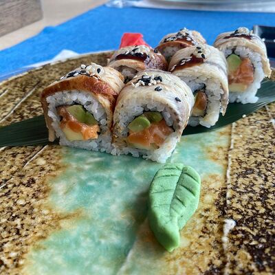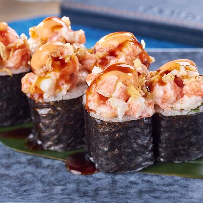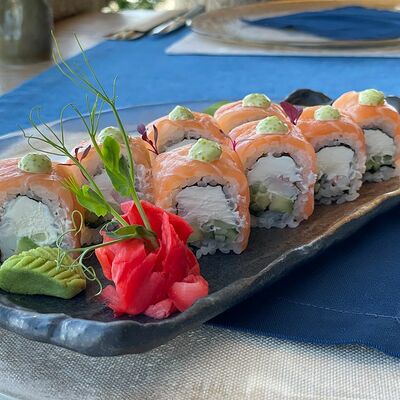 Лосось, креветка, сливочный сыр, авокадо, огурец, рис