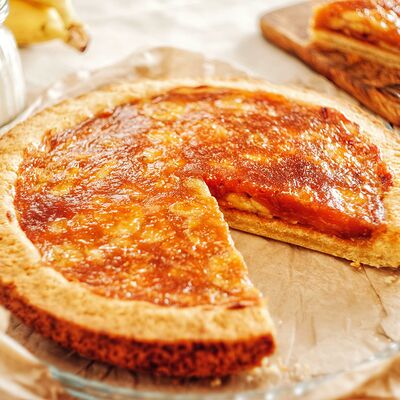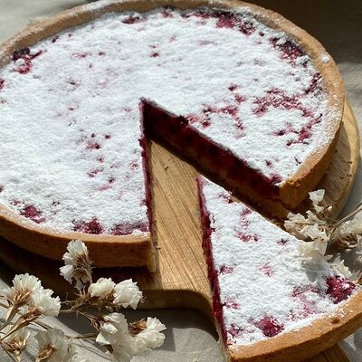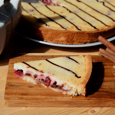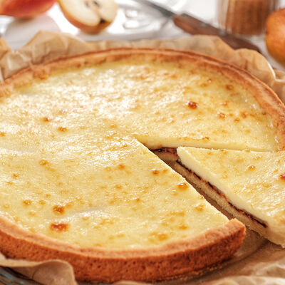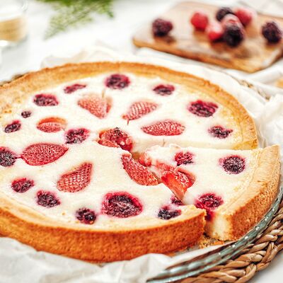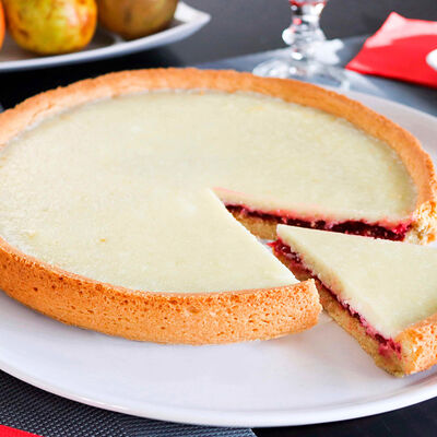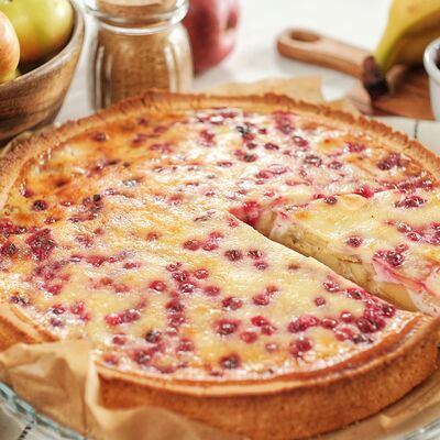 Ароматные яблоки и брусника в сметанной заливке на песочном корже (26 см)