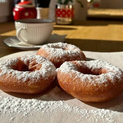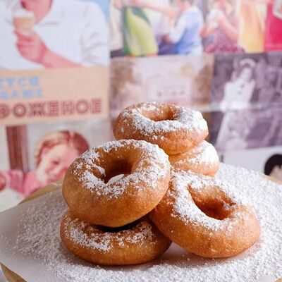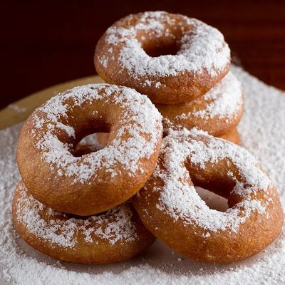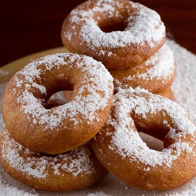 Мука, вода, сахар, соль, дрожжи, растительное масло, фритюрное масло, сахарная пудра (30 шт.)