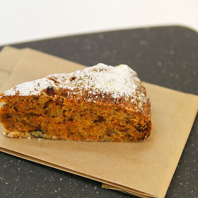 Морковь, мука пшеничная, сахар-песок, масло растительное, орех грецкий, изюм, соль, цедра апельсина, цедра лимона, сахарная пудра, корица молотая. Морковь, протертая на терке, измельченные грецкий орех и изюм, молотая корица, а также цедра апельсина и лимона - все ингредиенты поочередно вмешиваются в тесто, так оно получается в меру плотным, но очень нежным и сочным