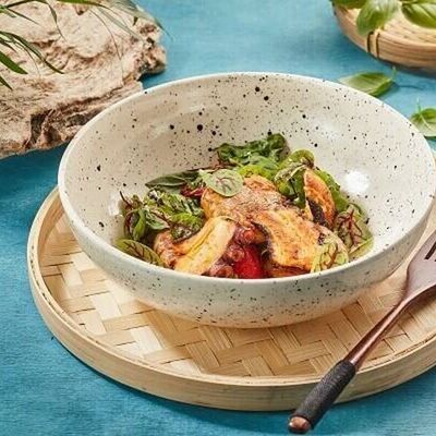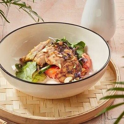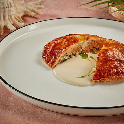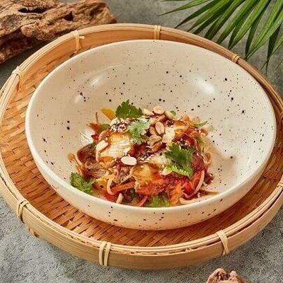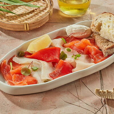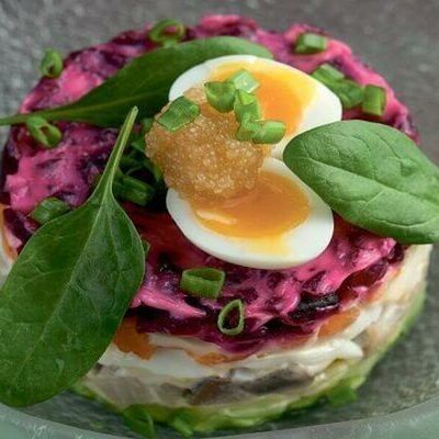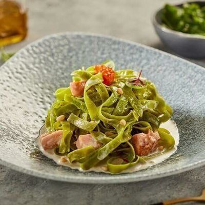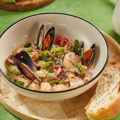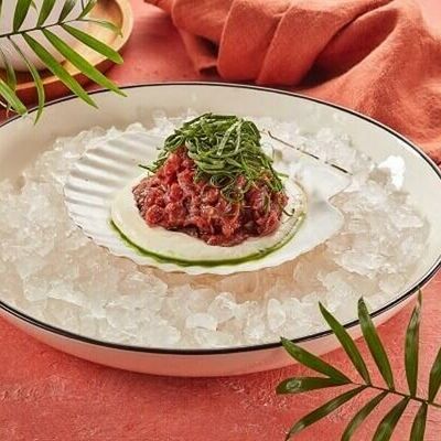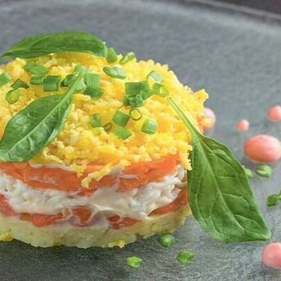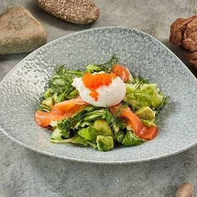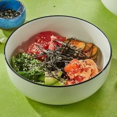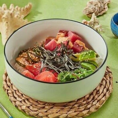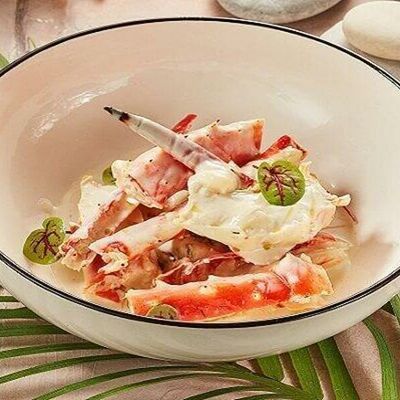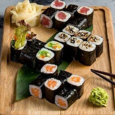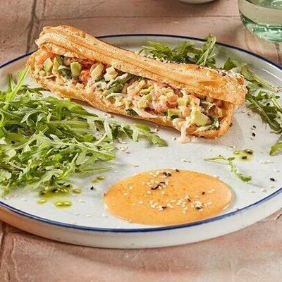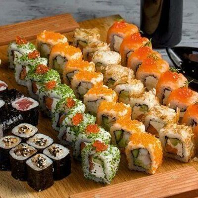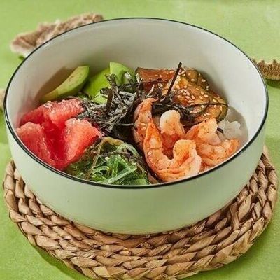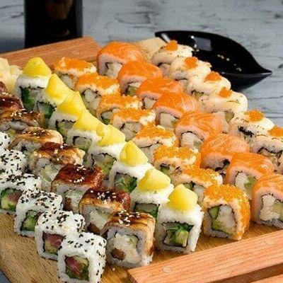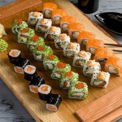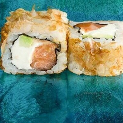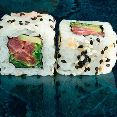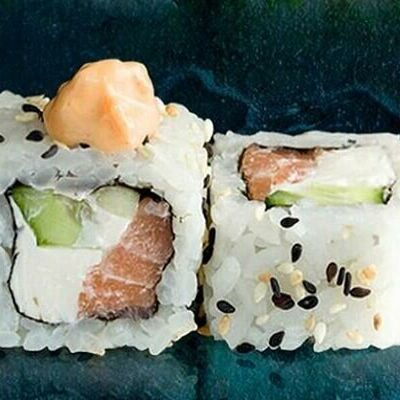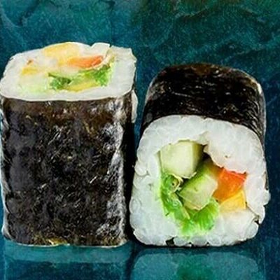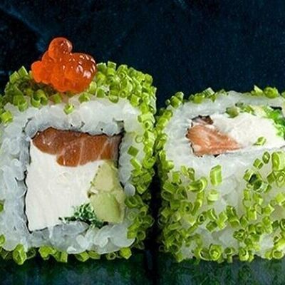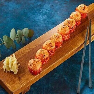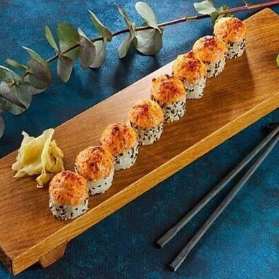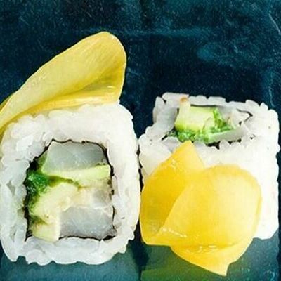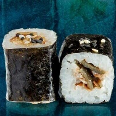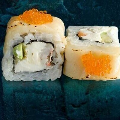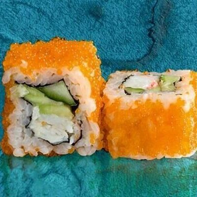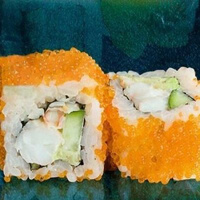 • Рис • Нори • Авокадо • Огурец • Краб • икра Тобико • Майонез. Подается с маринованным имбирем, васаби и соевым соусом