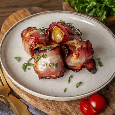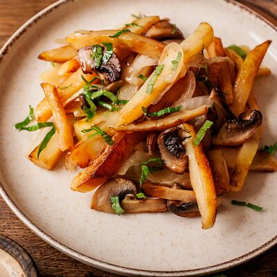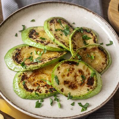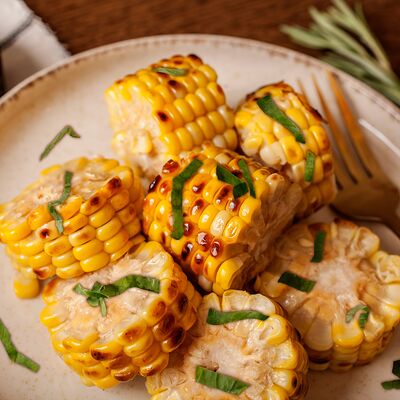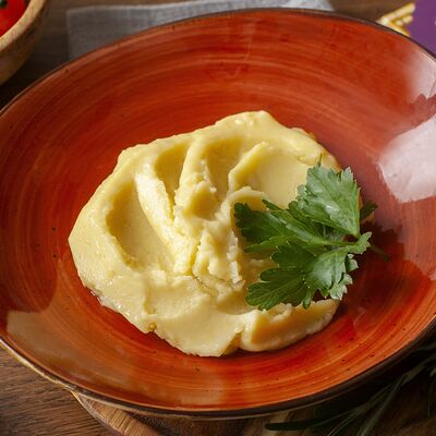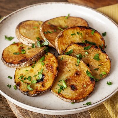 Картофель, обжаренный на мангале, с ароматом дымка. Подаётся с рубленой свежей зеленью
