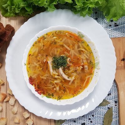Куриное филе, лапша, лук репчатый, морковь, соль специи