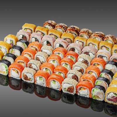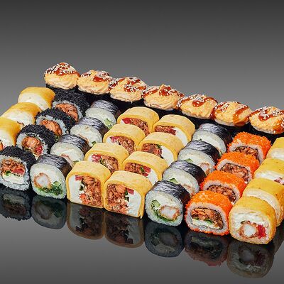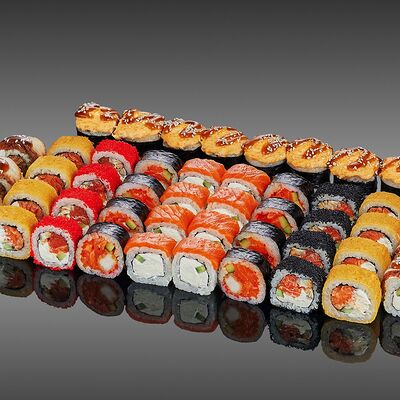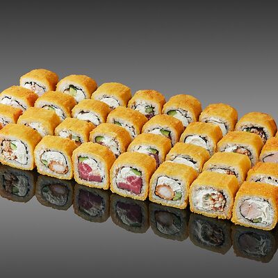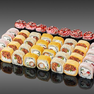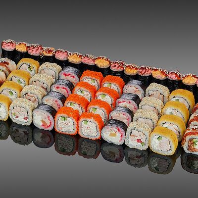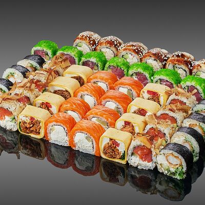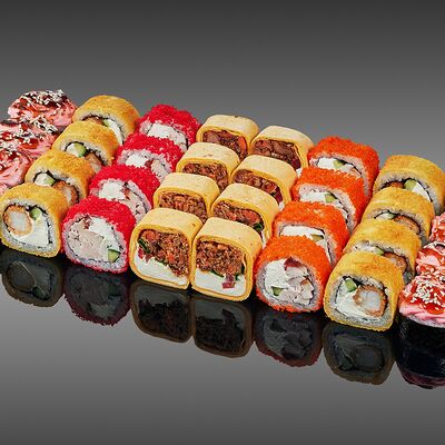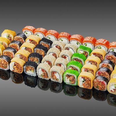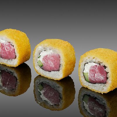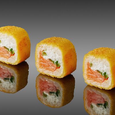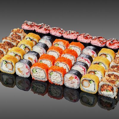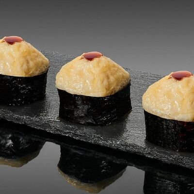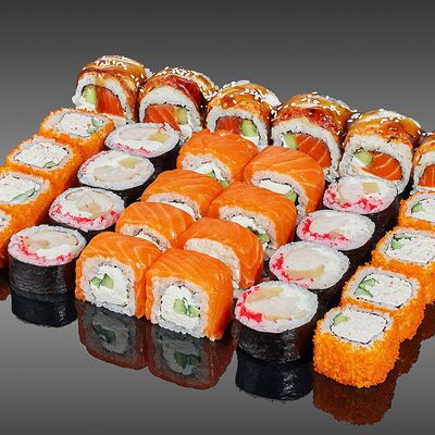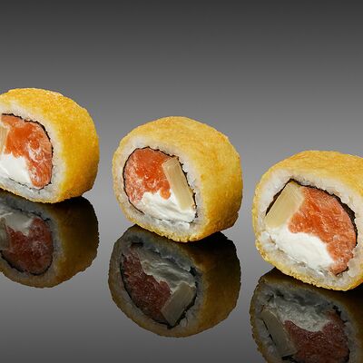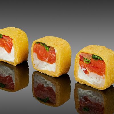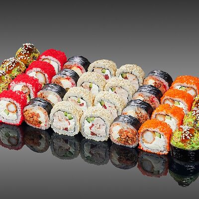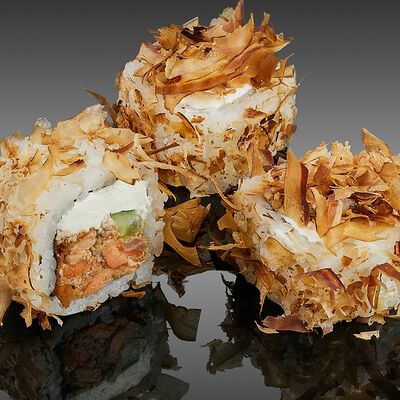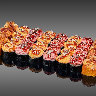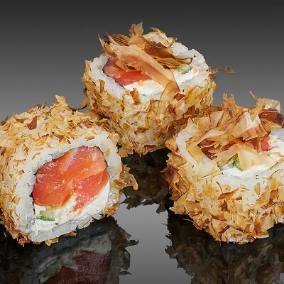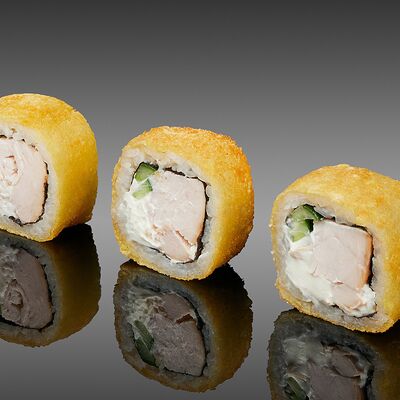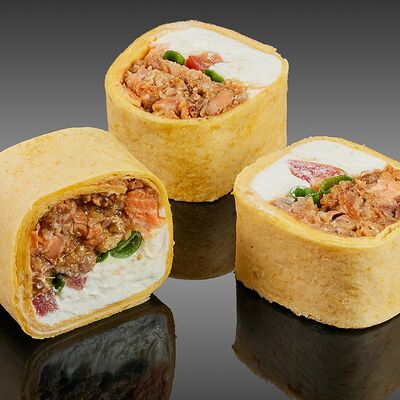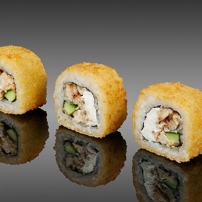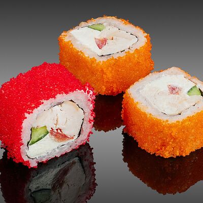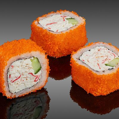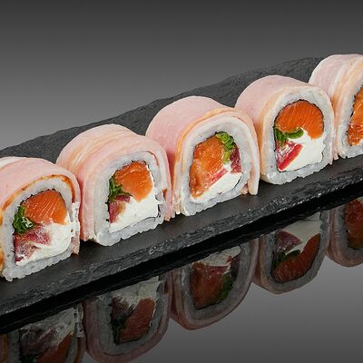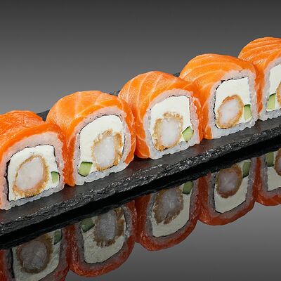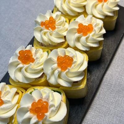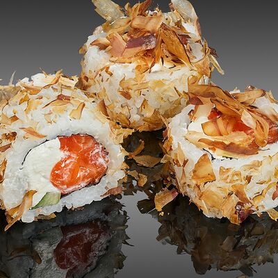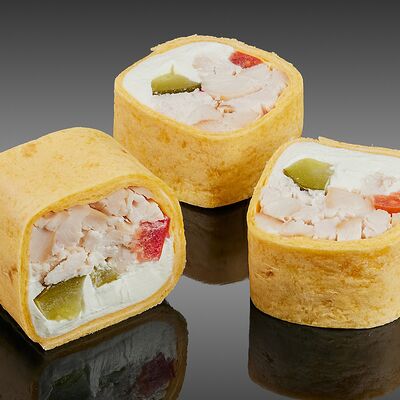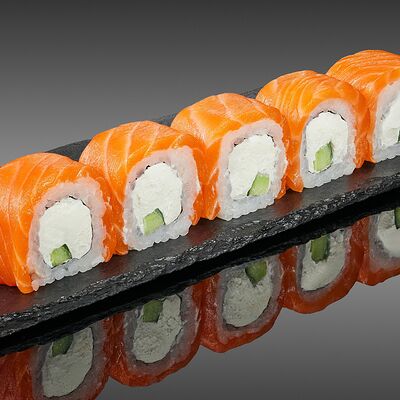 Рис, нори, сливочный сыр, салат чука, томат, огурец, ореховый соус (порция 8 шт)