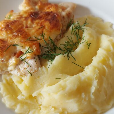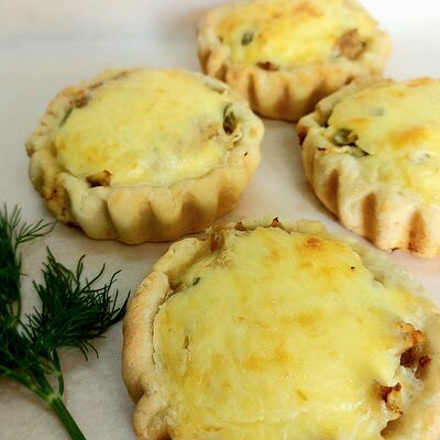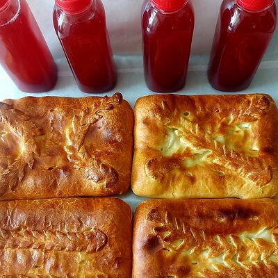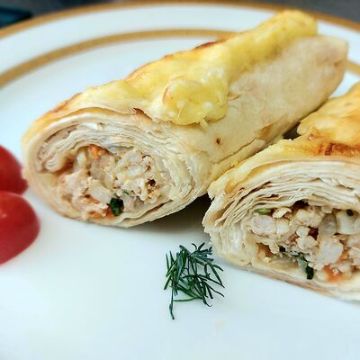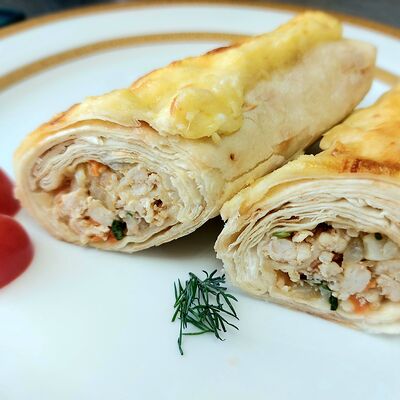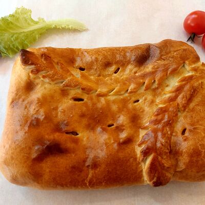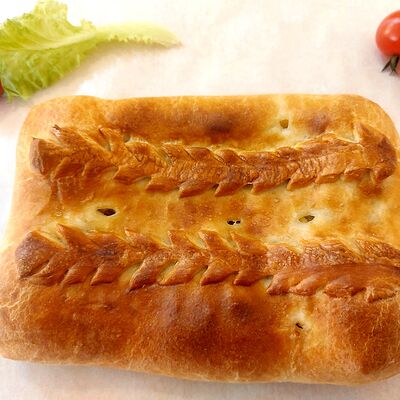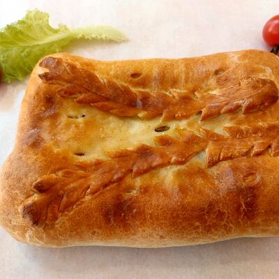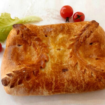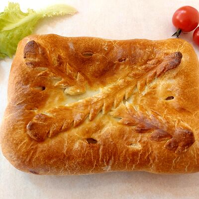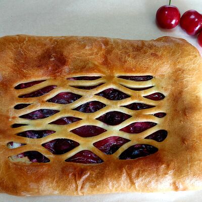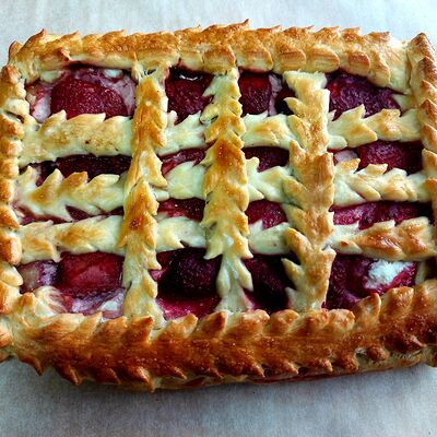 Тонкий слой слоеного теста, творог, клубника, сливочное масло (20х15 см)