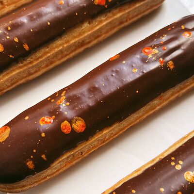 Эклер с заварным шоколадным кремом, сверху тёмный шоколад