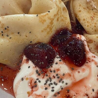 Блины с клубничным вареньем и сметаной доставка