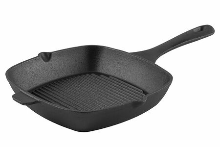 Сковорода-гриль Gipfel Diletto 51050. Изготовлена из чугуна без покрытия. Размер 24х24х5 см. Данную сковороду можно использовать на всех типах плит, включая индукционные. Ребристое дно посуды подарит стейку аппетитный рисунок и поджаристую корочку.Изделие из чугуна рекомендуется мыть щадящими моющими средствами или содой в теплой воде сразу после использования. Очищать нужно при помощи мягкой щетки или губки. Сковорода-гриль Gipfel Diletto 51050 не предназначена для мытья в посудомоечной машине. Использование посудомоечной машины может повредить изделие из чугуна. Желательно мыть вручную без использования агрессивных абразивных веществ. Избегайте резкого перепада температур, не помещайте раскаленный чугун в холодную воду. Не оставляйте чугунную посуду в воде на долгое время, высушите сразу после мытья - вытирайте посуду насухо. Рекомендуется выкладывать бумажное полотенце для впитывания лишней влаги, которая может остаться в минимальных количествах. Для хранения сковороды рекомендуется смазать внутреннюю часть растительным маслом.