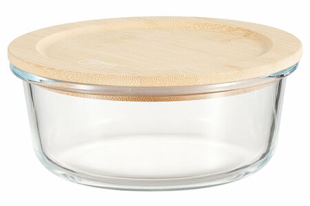 Контейнер стеклянный Gipfel Stor 51958 круглой формы диаметром 15 см, высотой 6,5 см. Объем 640 мл. В комплекте крышка из бамбука. Изготовлен из жаропрочного боросиликатного стекла.В крышке предусмотрен силиконовый уплотнитель для плотного прилегания крышки к контейнеру, что позволяет сохранить свежесть продуктов и предотвращает попадание посторонних запахов.Без крышки контейнер может использоваться в духовом шкафу и микроволновой печи.Допускается мытье в посудомоечной машине без бамбуковой крышки.Упакован в фирменную коробку.