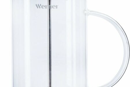 Френч-пресс Werner Allegro 51460 объемом 600 мл. Френч-пресс прекрасно подойдет для заваривая как кофе, так и чая. Корпус изготовлен из боросиликатного стекла, фильтр из нержавеющей стали 18/10. Фильтр с пружиной не только предотвращает попадание чаинок в напиток, но и позволит взбить в пену молоко. Ручка удобна даже для большой ладони. Рекомендуется промывать фильтр после каждого применения, для этого открутите его от поршня и разберите. Если вы завариваете кофе, то используйте только грубый помол, так как мелкий помол может засорить фильтр. Френч-пресс при сервировке сочетается с другими товарами серии Allegro. Упакован в стильную подарочную коробку.