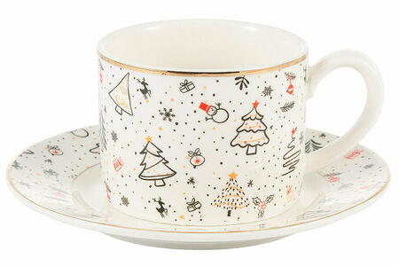 Чайная пара Gipfel Christmas 42939. Чашка объемом 250 мл, блюдце диаметром 14 см.Изготовлена из фарфора. Он безопасен для здоровья, не содержит вредных веществ или токсинов, дольше других материалов сохраняет тепло, а значит вкус и качество напитка будет неизменным на протяжении всего чаепития.Фарфор New Bone China – это усовершенствованная версия костяного фарфора, при изготовлении которого используется не костная зола, а синтетический аналог, позволяющий сохранить все уникальные характеристики: прочность, тонкие и прозрачные на свет стенки, а также белизну.Фарфоровая посуда – это, прежде всего, эстетическое наслаждение. Ее гладкая поверхность и стильный дизайн создают великолепное визуальное впечатление. Каждая деталь тщательно продумана, чтобы подчеркнуть изысканность сервировки.Christmas – новогодняя линейка посуды от Gipfel. Чашка и блюдце украшены забавным принтом, будто нарисованным детской рукой. Создавайте праздничное настроение с посудой от Gipfel.Чайная пара упакована в фирменную коробку. Станет отличным Новогодним или Рождественским подарком.Рекомендации по использованию и уходу:Беречь от ударов и падений.Не подвергать термошоку - резким большим перепадам температуры.Не нагревать в микроволновой печи, на конфорках плиты или открытом пламени.Не использовать абразивные средства или металлические мочалки.Не мыть в посудомоечной машине.Для мытья использовать жидкие моющие средства и мягкую губку.