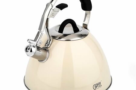 Чайник для кипячения воды GIPFEL CORFU . Объем чайника 3 л. Носик со свистком. Чайник оснащен индукционным капсульным дном. Материал: нержавеющая сталь 18/10. Толщина: 0,5 мм. Цвет: бежевый. Ручка сделана из силикона. Подходит для газовых, индукционных, электрических, и галогеновых плит. Упакован в фирменную коробку Gipfel.