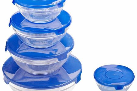 Набор GIPFEL CAMELIA 6208. В наборе 5 стеклянных контейнеров с пластмассовыми крышками. Контейнеры удобны для переноски и хранения пищевых продуктов. Стеклянные контейнеры можно использовать в микроволновой печи. Объем емкостей: 150 мл, 200 мл, 350 мл, 500 мл, 900 мл.