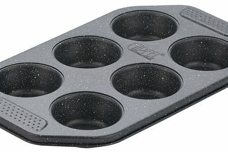 Форма для выпечки GIPFEL MARBLE BLACK 50971. Форма подходит для выпечки 6 кексов 6,5Х3см. Форма с антипригарным покрытием. Материал: углеродистая сталь.